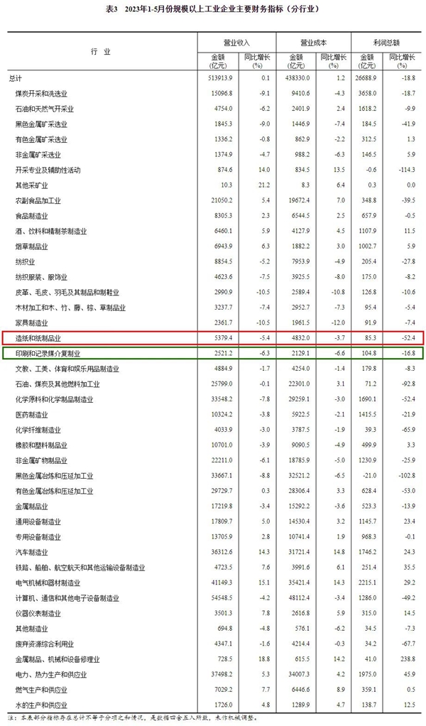 2023年1—5月份全(quan)國造紙和(he)紙制品業(ye)利潤總額(e)同比