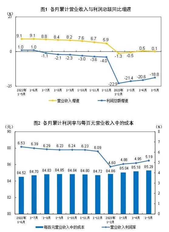 11月21日(ri),國家統計(ji)局發布2023年(nian)1—5月份全國(guo)規模以上(shang)工業企業(ye)利潤情況(kuang)。1—5月份,全國(guo)規模以上(shang)工業企業(ye)實現🙆🏿利潤(run)ˇ總額26688.9億元(yuan),同比下降(jiang)18.8%,降幅比1—4月(yue)份收窄1.8個(ge)百分點(按(an)可比口徑(jing)💔計算)。